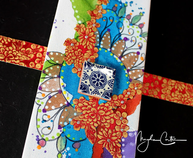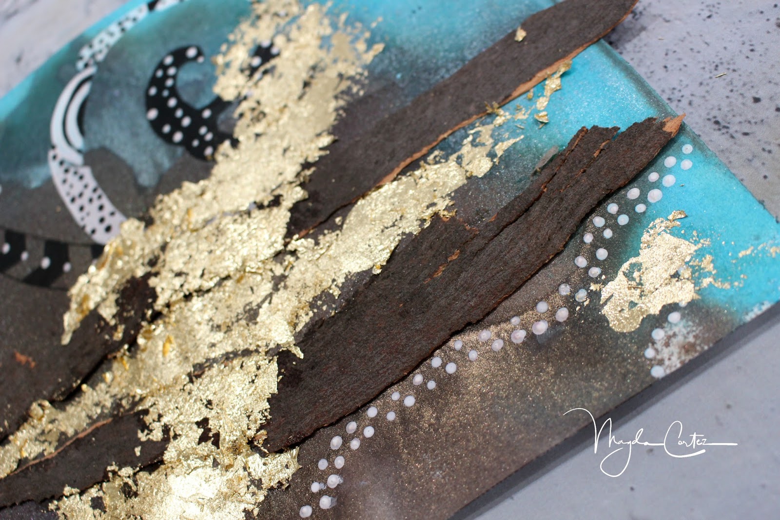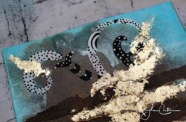 For my piece of art I use watercolor paper, Lyndy's Stamp Gang Mists and black and white acrylic colors.